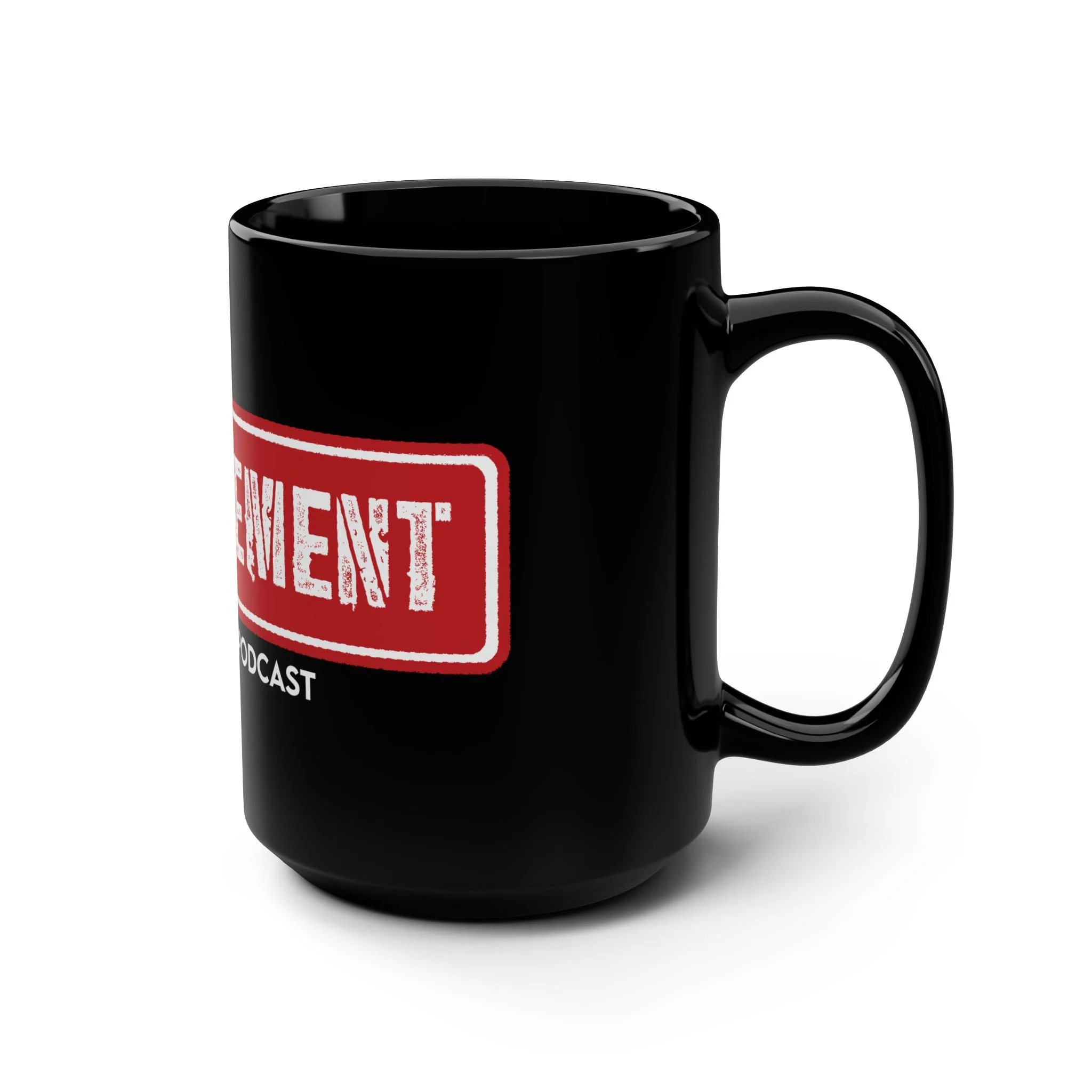 Bring the basement bunker vibe to your coffee routine. This larger 15oz black mug features The Basement Podcast design—ideal for fans who need extra caffeine during deep dives into government cover-ups and paranormal phenomena.